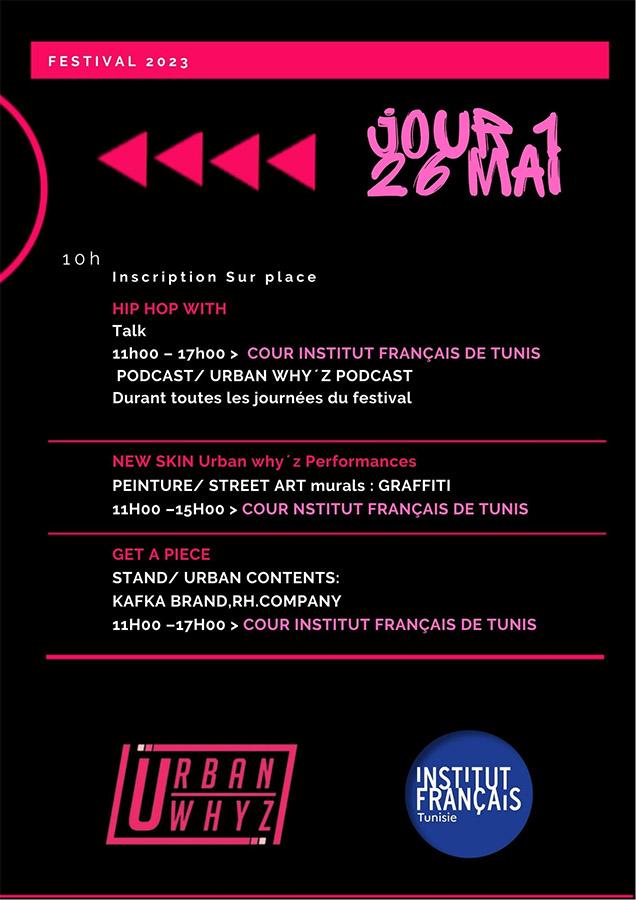 Du 26 au 27 mai, l'Institut français de Tunisie accueille "Urban Why'z", le festival dédié aux cultures urbaines (rap, graffiti, mcing, danse, dj set, hip hop...).