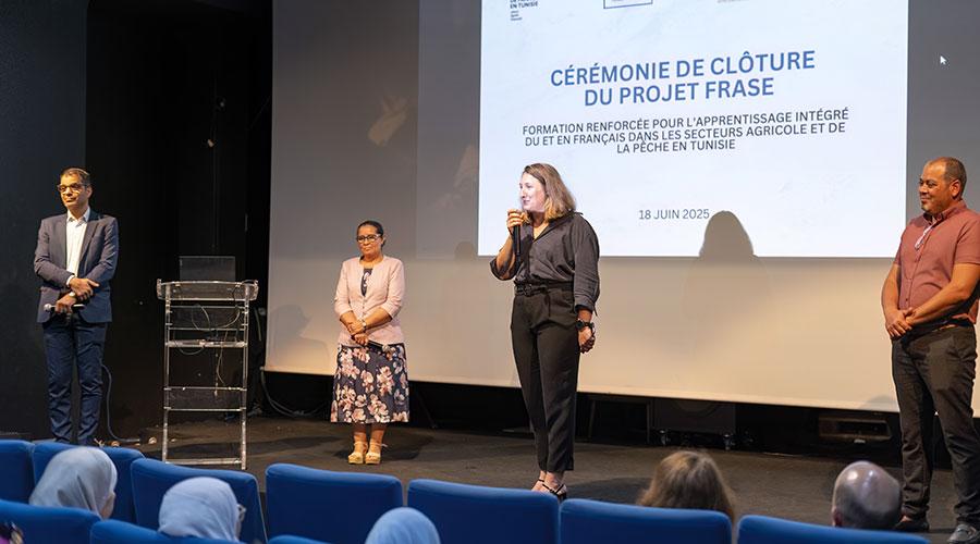 Le 18 juin 2025, l’Institut français de Tunisie a accueilli la cérémonie de clôture du projet "FRASE" (Formation Renforcée pour l'Apprentissage Intégré du et en français dans les secteurs Agricole et de la Pêche en Tunisie, en présence des partenaires tunisiens et français du projet.