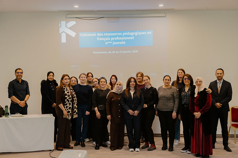 Du 20 au 23 janvier, les formateurs de l’Agence de Formation aux Métiers du Tourisme (AFMT) de l’Agence Tunisienne de la Formation Professionnelle (ATFP) ainsi que des représentants du Centre National de Formation de Formateurs et d’Ingénierie de Formation (CENAFFIF) ont participé à une formation dédiée aux formateurs en langue française et communication.
